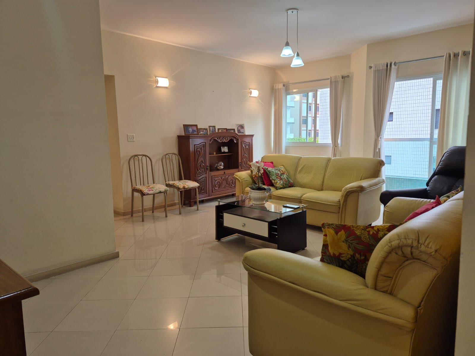 Sala 2 ambs grande com sacada, copa Cozinha espaçosa, ampla área de serviço, WC social grande, 3 dormitórios espaçosos, sendo 2 suítes, sendo uma equipada com hidromassagem.