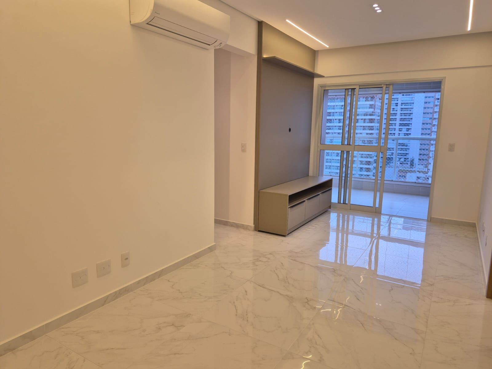 O Apartamento possui sala de 2 ambientes com painel planejado e rack de mdf de alta qualidade,