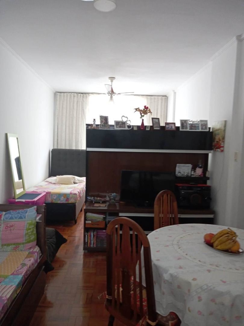 Apartamento de 1 dorm c/ sala de 2 ambs, vista livre, 1 quadra da praia no bairro do José Menino em Santos. Condução na porta, portaria 24 hs, prox de comércios variados. Aceita Financiamento e FGTS.